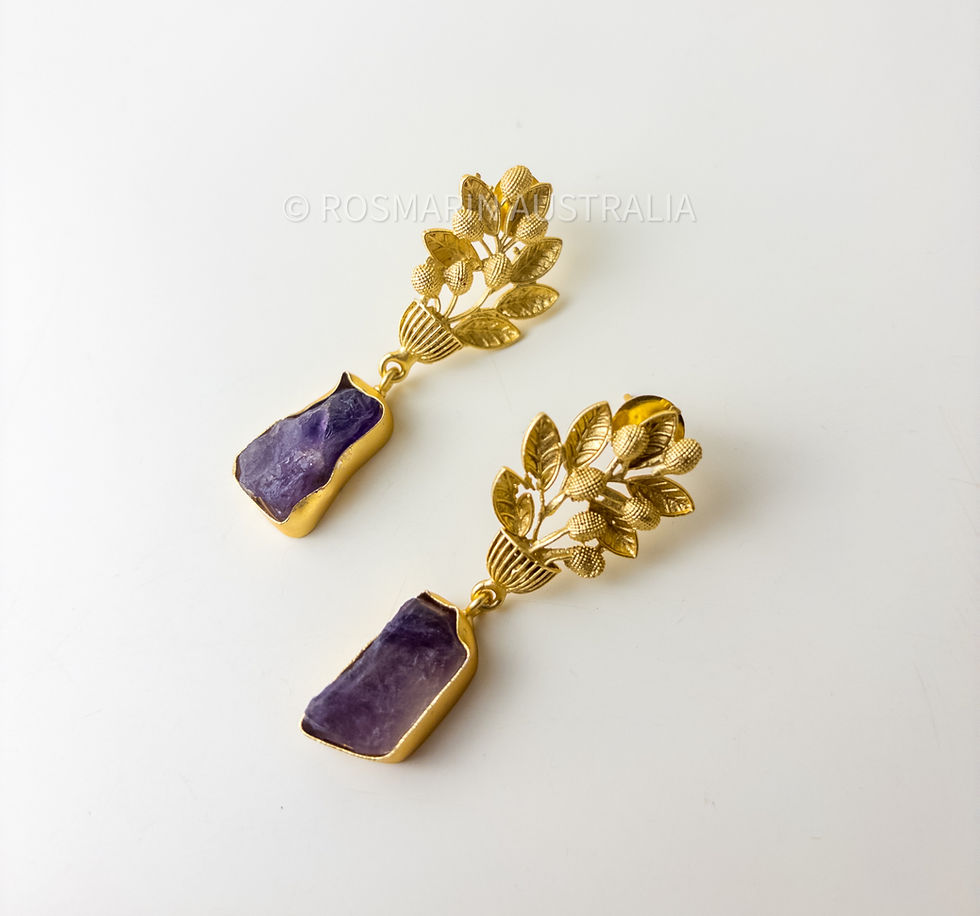 Regalia Leaf Natural Stone Drop Brass Earrings