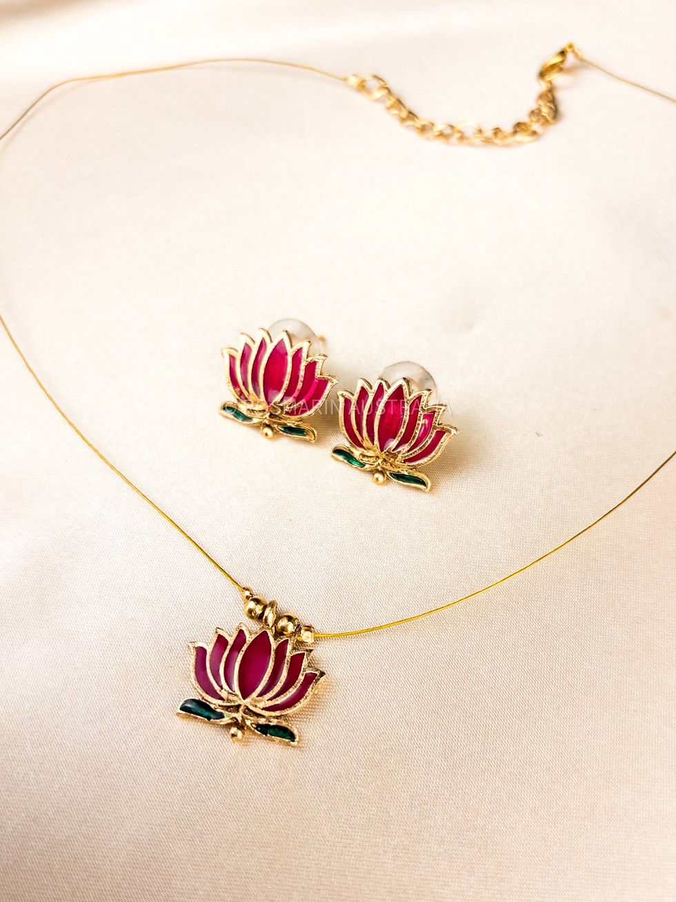 Lotus Bloom Statement Necklace Set with Gold Beads